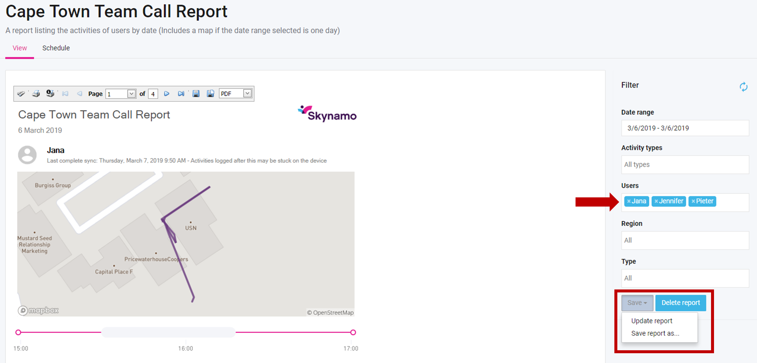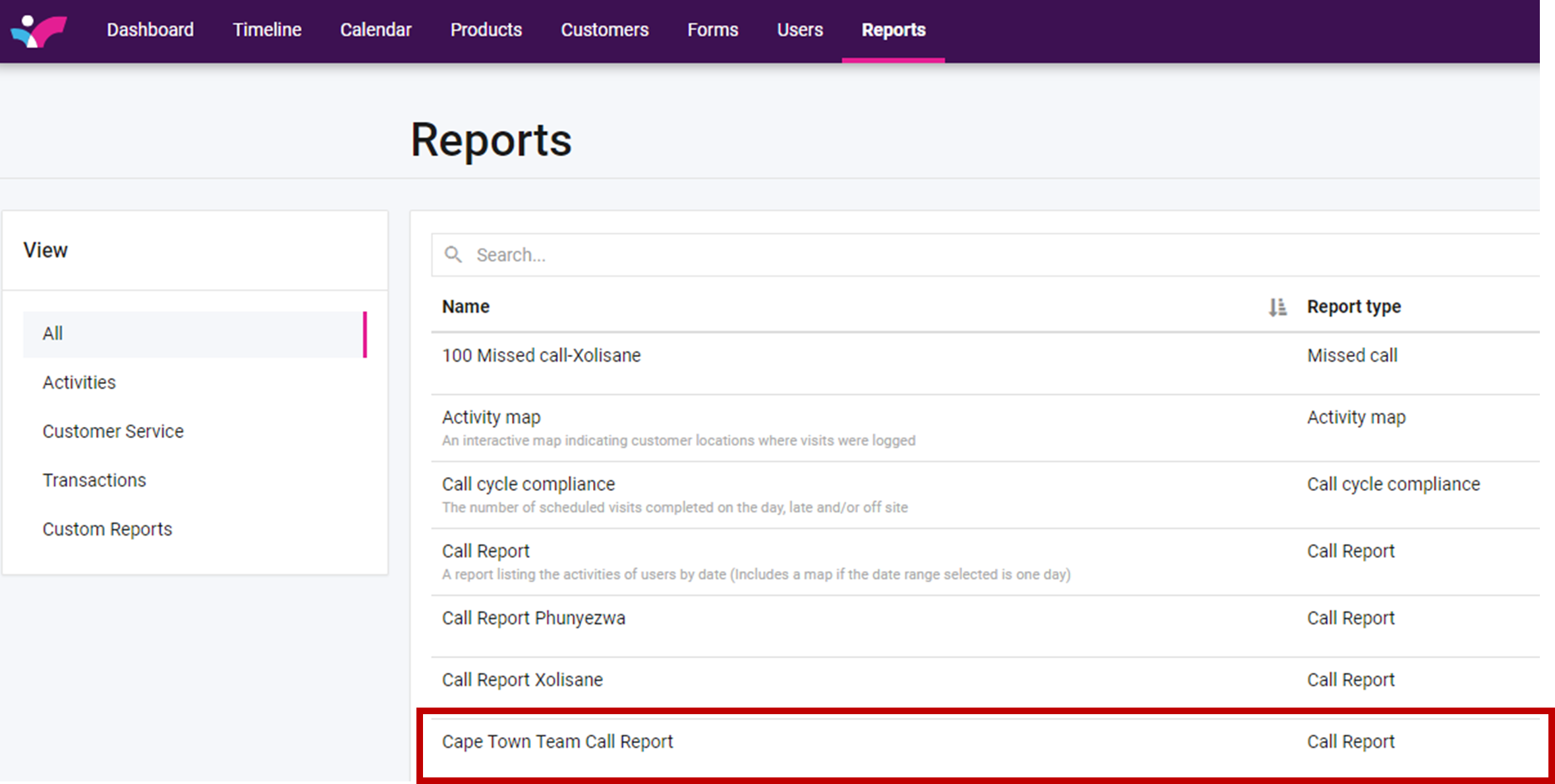 The Cape Town Team Call Report will be used as an example below.