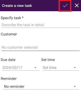 Once you have completed all the information for the task, select the tick mark at the top of the screen to load it to your To-do list.