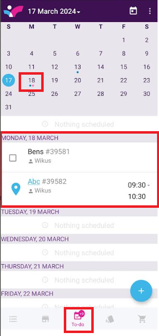 To add a task, open the To-do on the bottom navigation, and select the blue + and select whether you want to add a task or a scheduled visit: