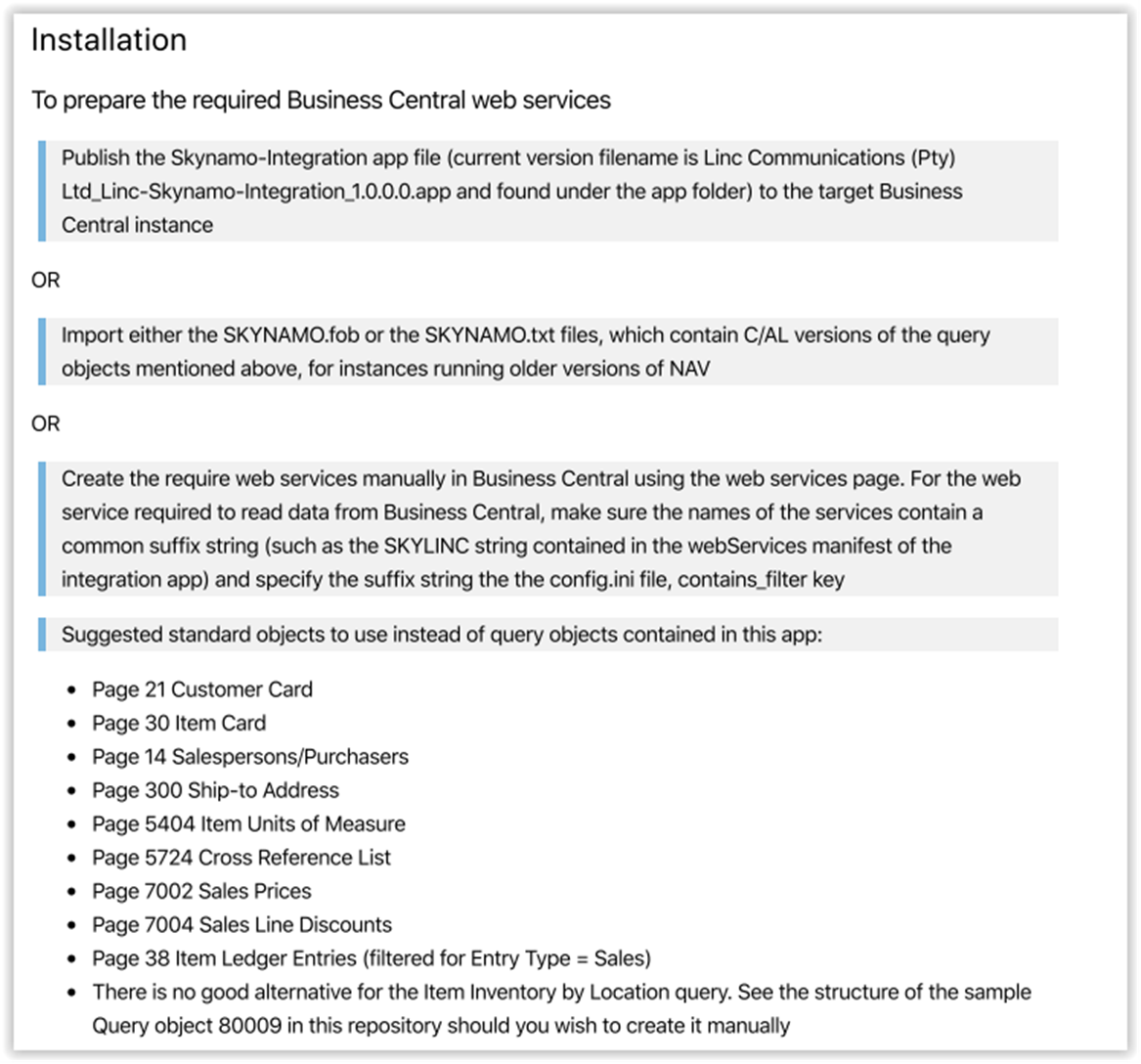 - We have an app that creates the necessary Web Service objects for us to call. The .app file is available at https://services.skynamo.com/. You will find the download link to the Microsoft Dynamics 365 Business Central/Navision Extension App.