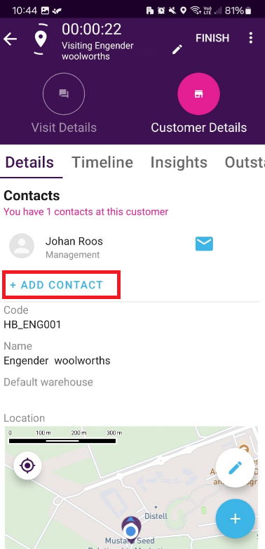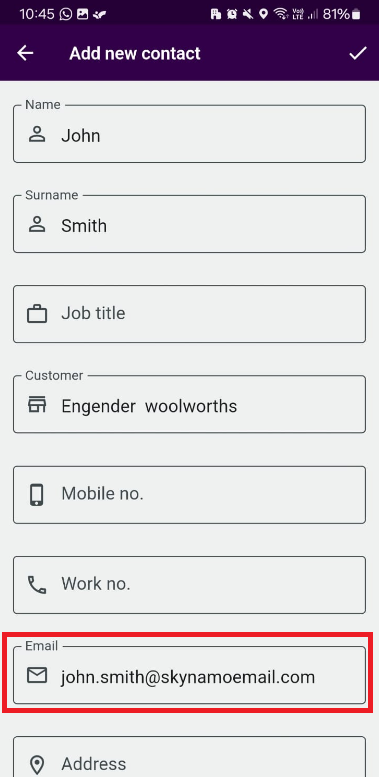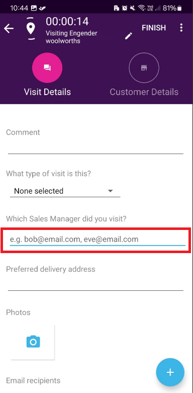 #4. When you the do a visit or order, or form, and select your email field, the contact you added will be listed at the top of the contacts list for each respective customer.