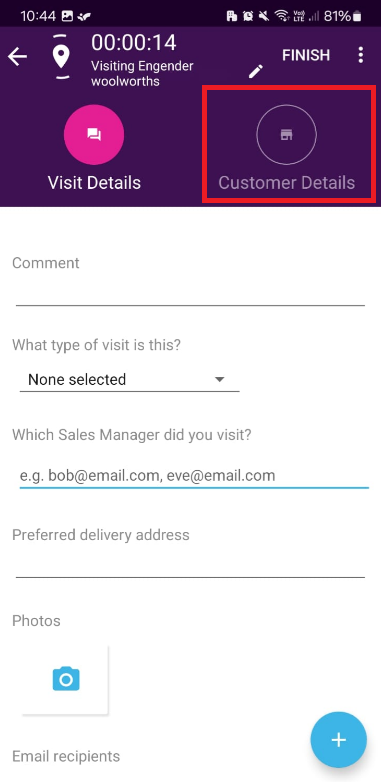 #1. From within your running visit select Customer Details: