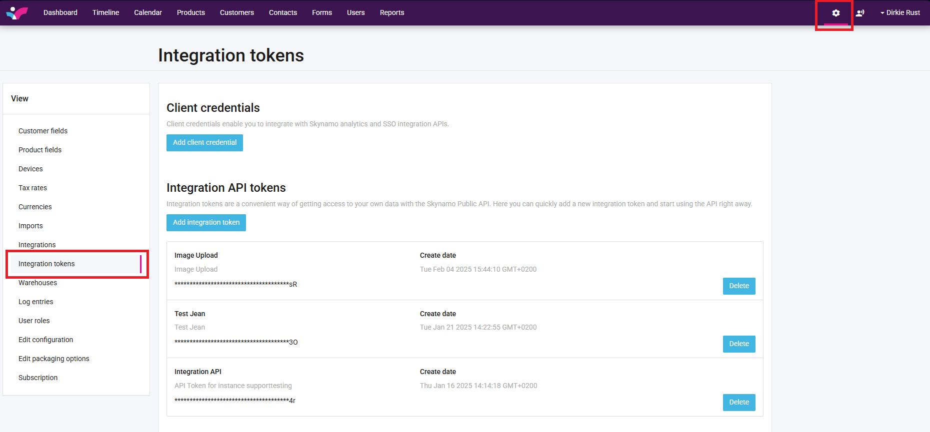 To create your access token, please follow the steps below: Navigate to your Settings, and select Integration Tokens on the view Panel: