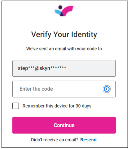 The one email will contain the code you’ll need to access your Skynamo account. You will need to enter this code in the block requesting you to verify your Identity, as seen in the image further down.