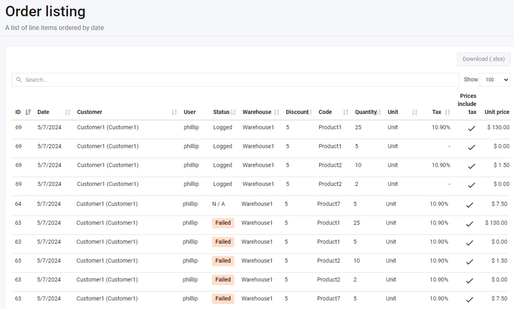 As you can see on the screenshot of the Order listing report above, only the Orders that have failed to pull through to the ERP system has a colour-coded tag. This makes it easier to identify the exceptions and to jump in where possible action is required to get the order logged.
