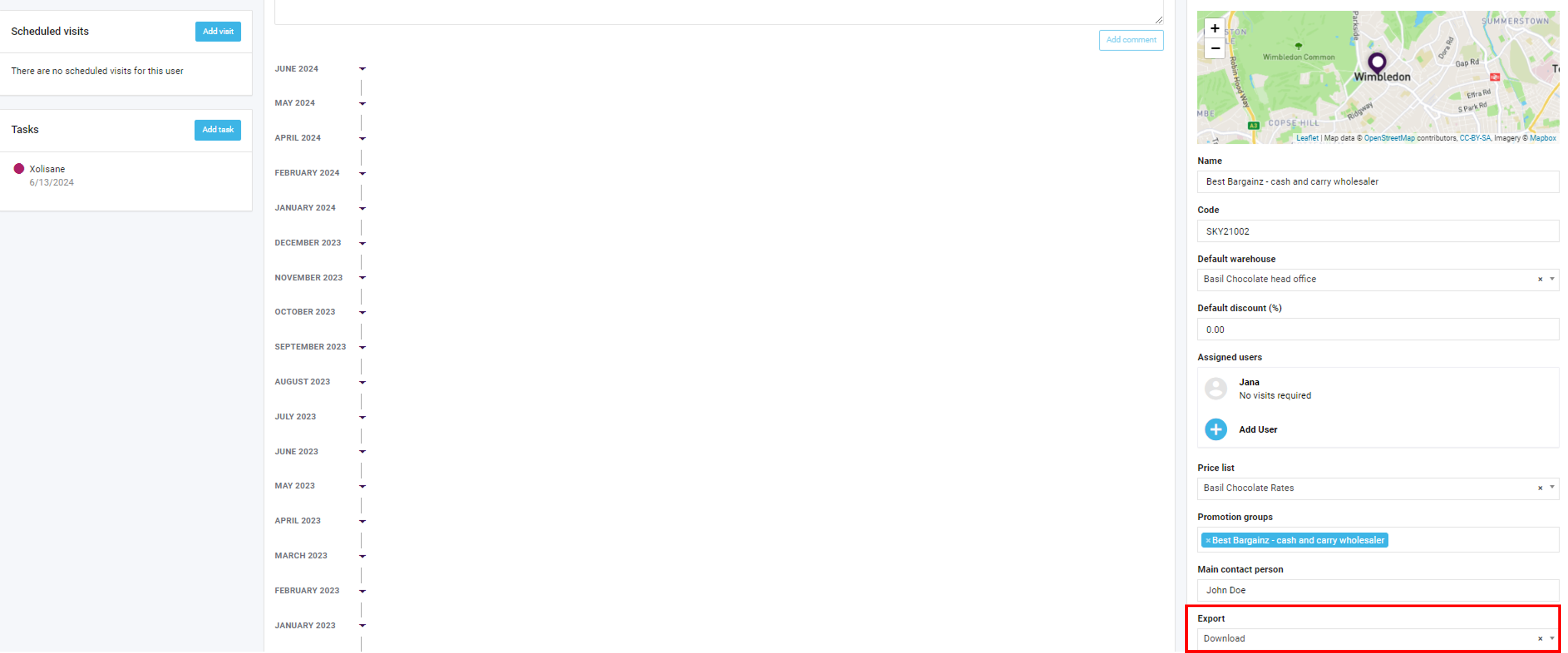 Navigate to Skynamo > reports > call report and apply the "download" option to the customer field we created: