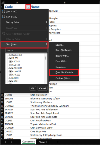 Click the Filter icon again -> Text filters -> Does not contain...