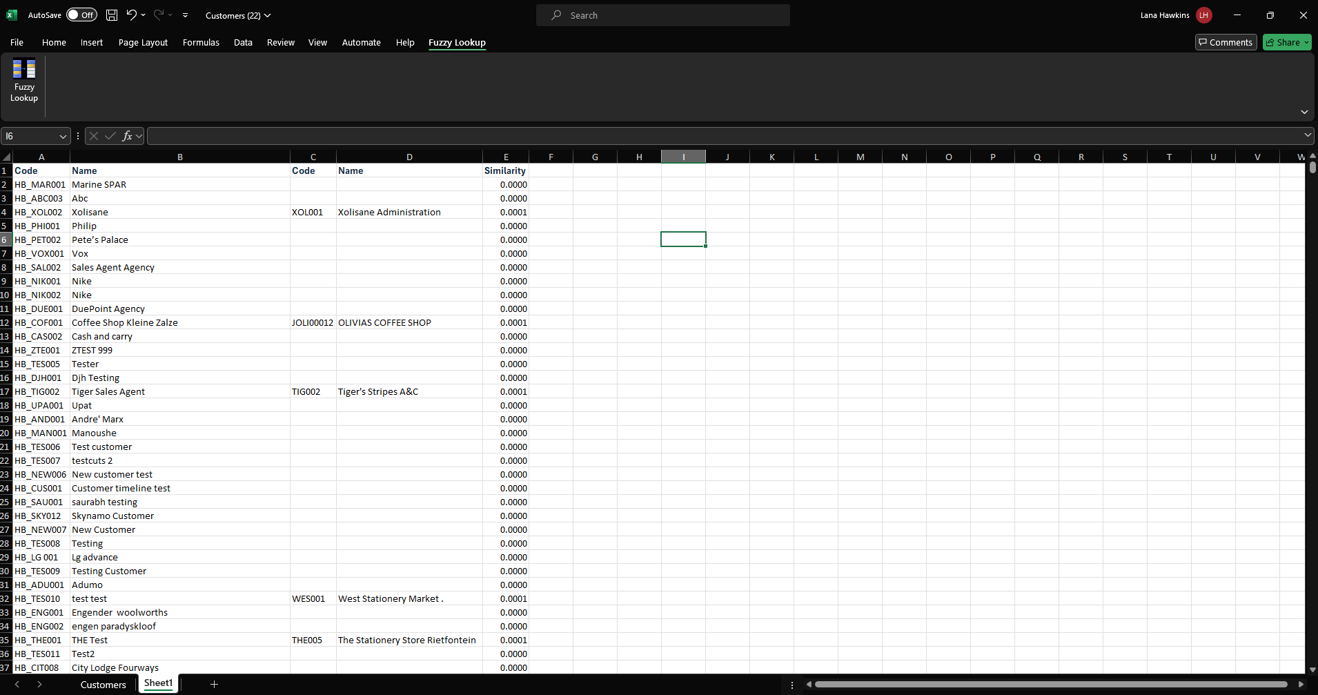 Your Fuzzy Lookup will then run. Once it has been completed, you can delete everything on the Excel file except Columns D-H (i.e. the Fuzzy Lookup data):