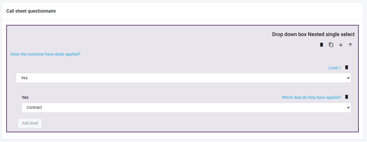 3. Nested Single Select: Presents the user with multiple options to choose from. One option can be selected and upon selection, another level of options or data set will open and a new option can be selected. For example: