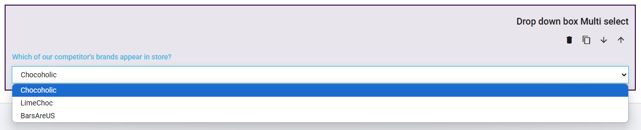 2. Multi Select: Presents the user with multiple options to choose from and more than one option can be selected. For example: