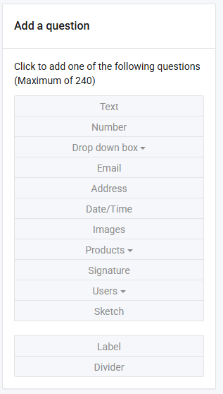 The drop-down option allows you to add options for your users to choose from. This simplifies the selection process and allows the users to quickly select an answer from a list of pre-defined options instead of having to type the answer out.