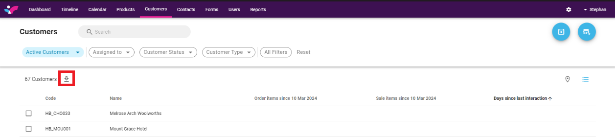 02 February 2026 How download your customer list Web 1. Click on the customer Tab. 2. Click on the download button next to number of customers.