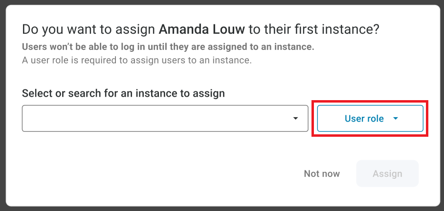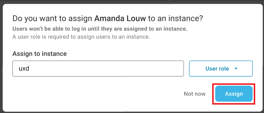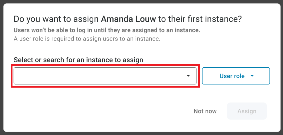 Once your user has been added, you need to assign them to the relevant instance, to give them access to that instance.