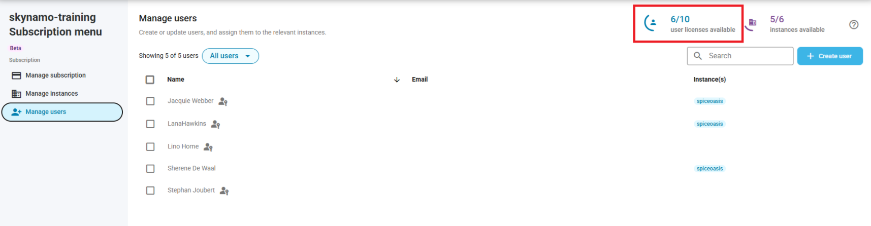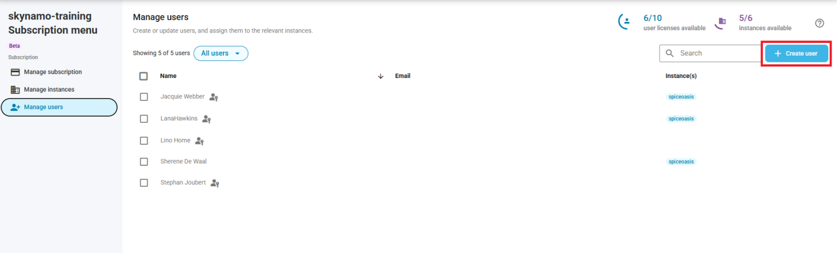 - You can then enter their user details and indicate whether you want them to be an Subscription administrator. Once you have done so, click on Create user: