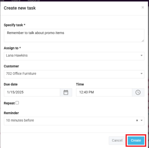 5. Click Create once you are done: