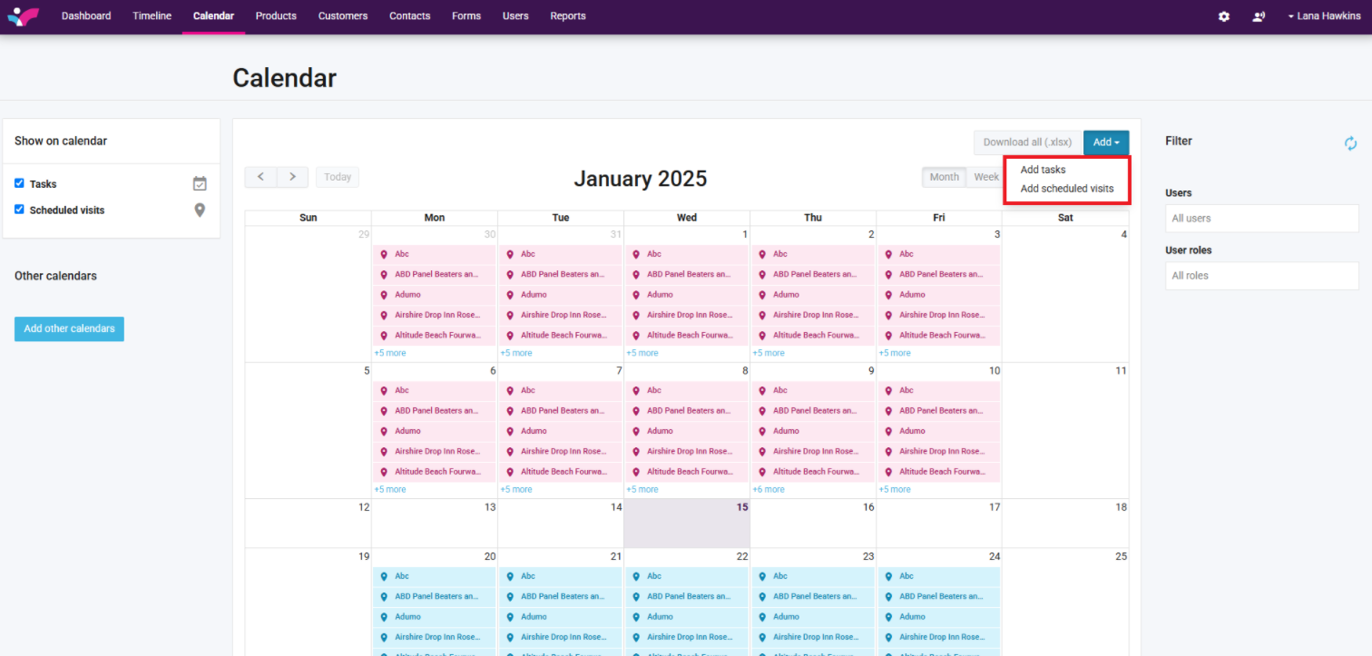 3. Choose whether you want to add a Scheduled visit or a task: