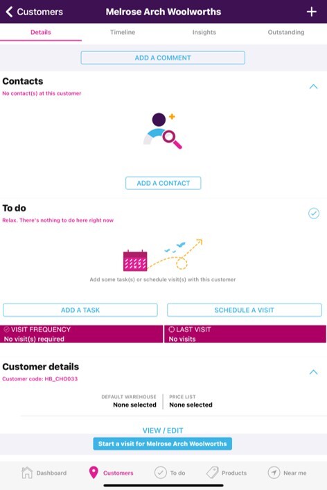 To be on the safe side, self-assign a customer for at least 30 minutes before completing a task on that customer to allow the app to sync all details relating to that customer.