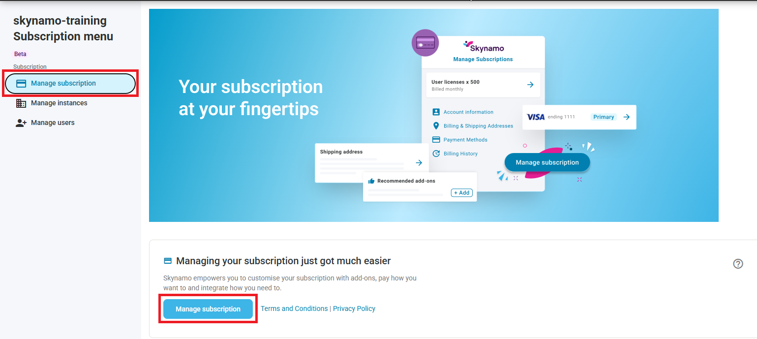 The subscription page can be accessed by going to app.skynamo.me and entering your email address and password. If you do not remember your password, you can reset it by clicking on "Get a new password" on the password page