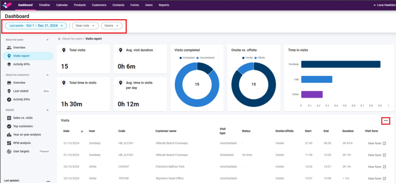 2. Select the required date range and apply any necessary filters: