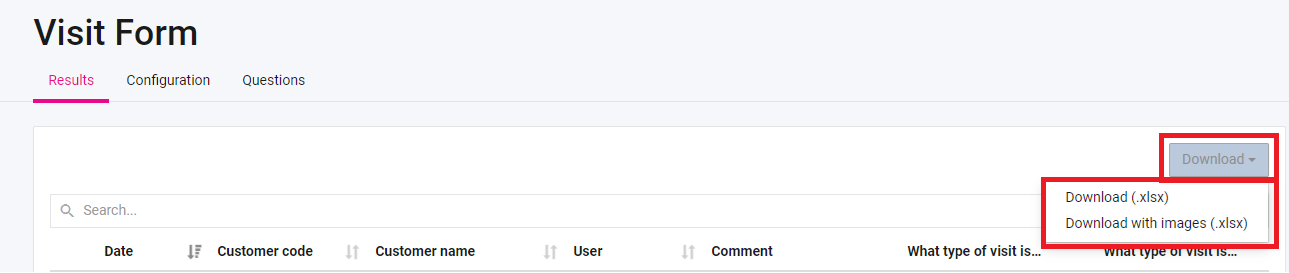 5. Click Download and select Download (.xlsx) to download the results in Excel format or Download with Images to download the results, with the images attached: