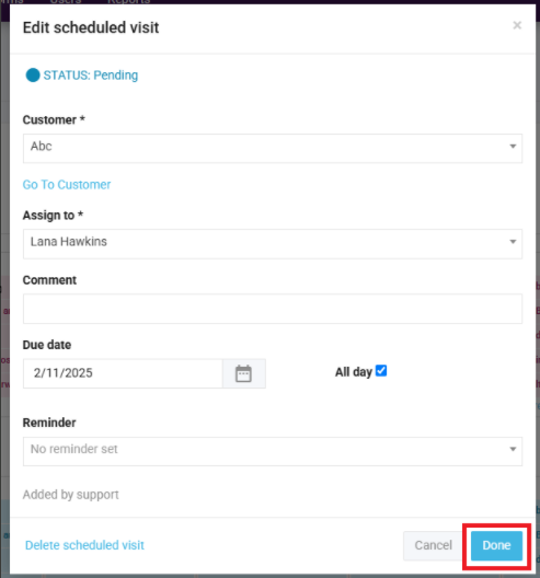 How to edit a scheduled visit/task - Web