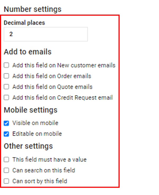 - Indicate number setting preferences. Decimal places – pre-sets the field according to the decimal places selected.