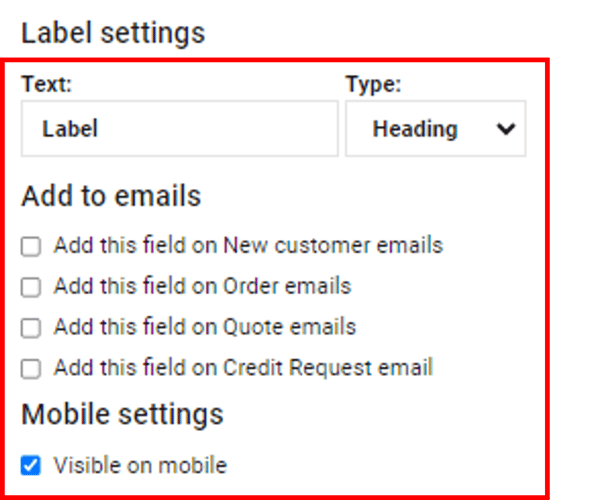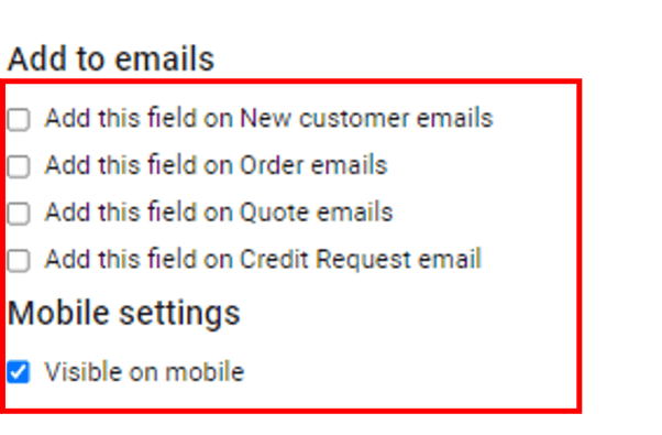 Mobile settings – if these boxes are both ticked then the mobile user can freely use this field from the front end. To restrict usage; deselect accordingly.
