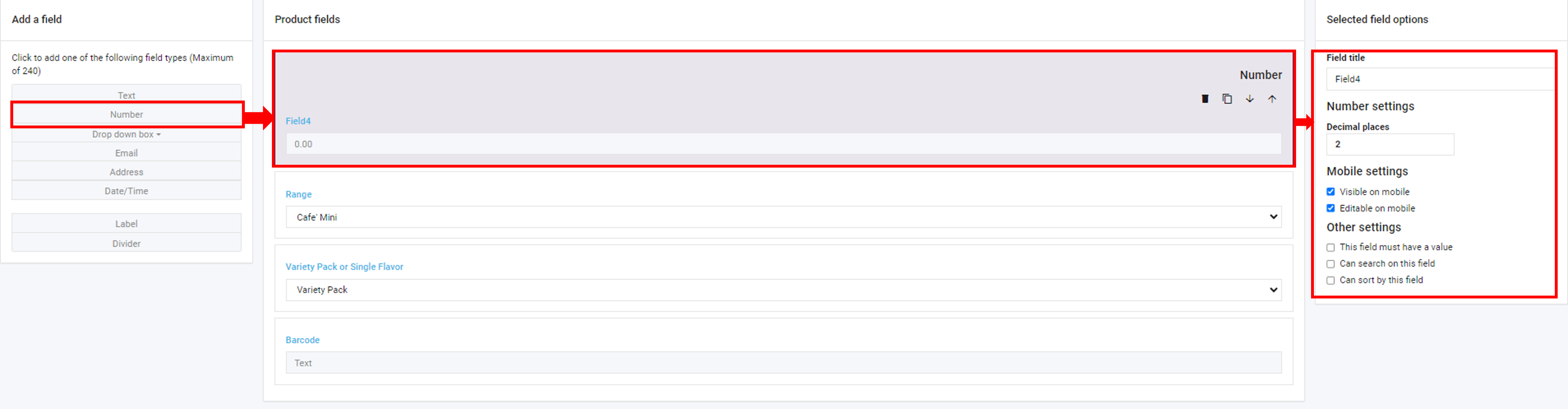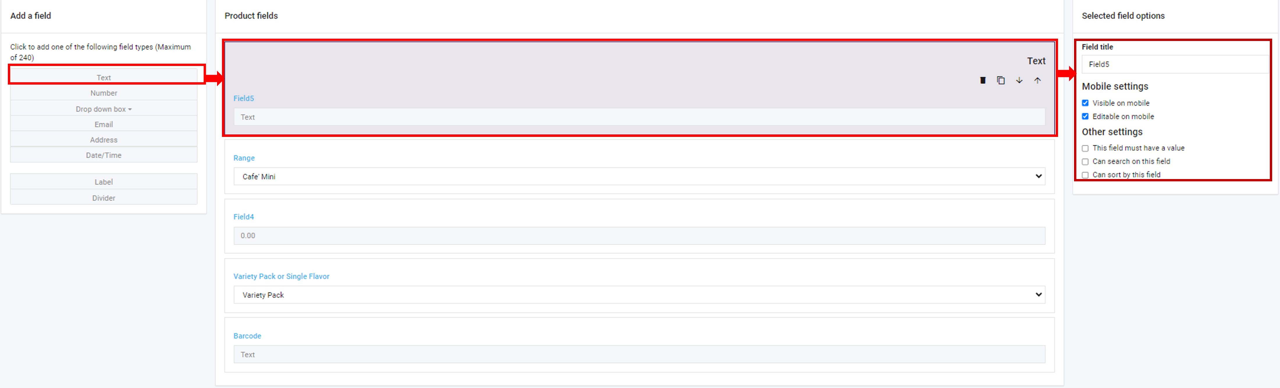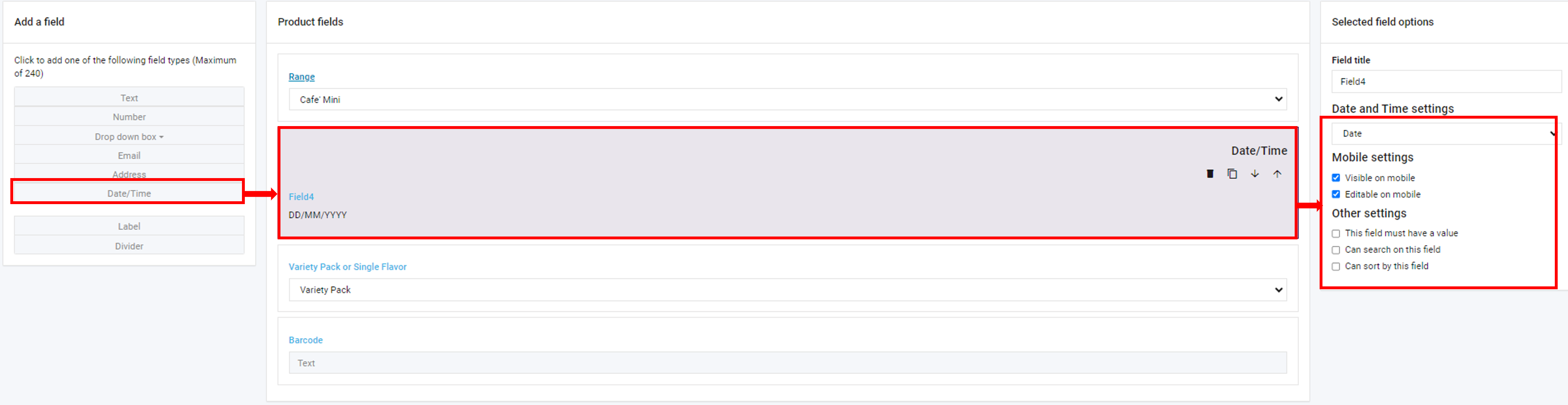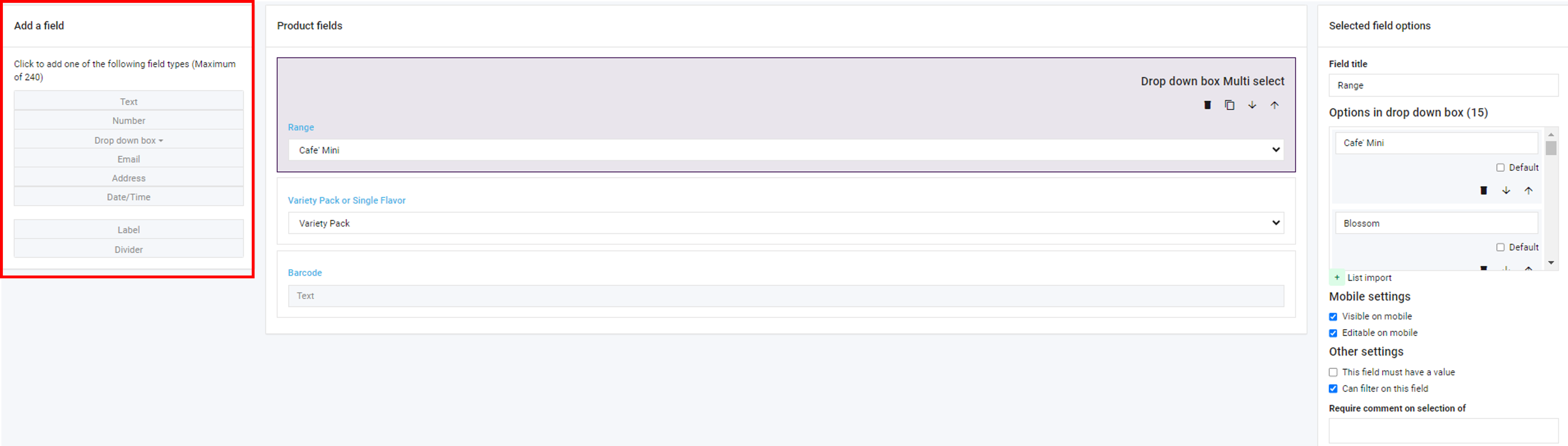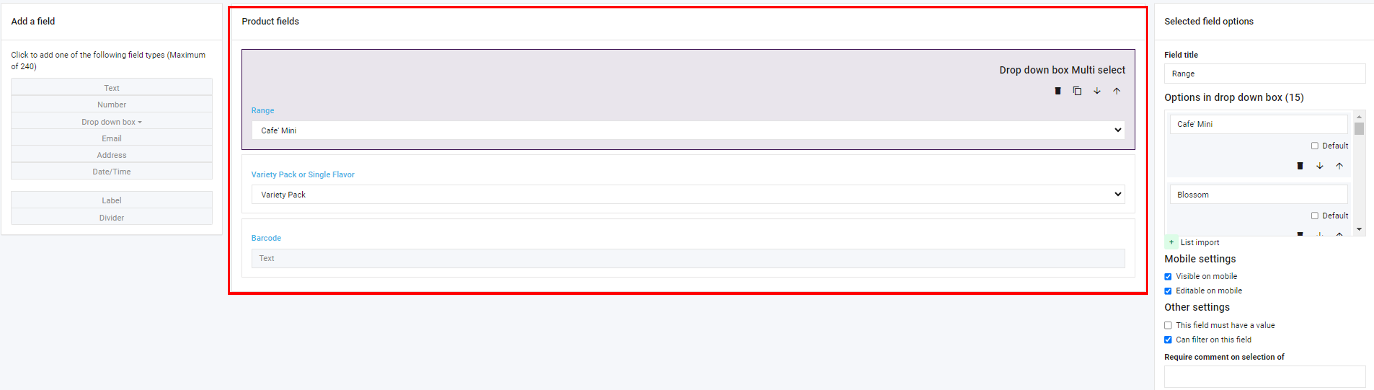Mobile settings – if these boxes are both ticked then the mobile user can freely use this field from the front end. To restrict usage; deselect accordingly.
