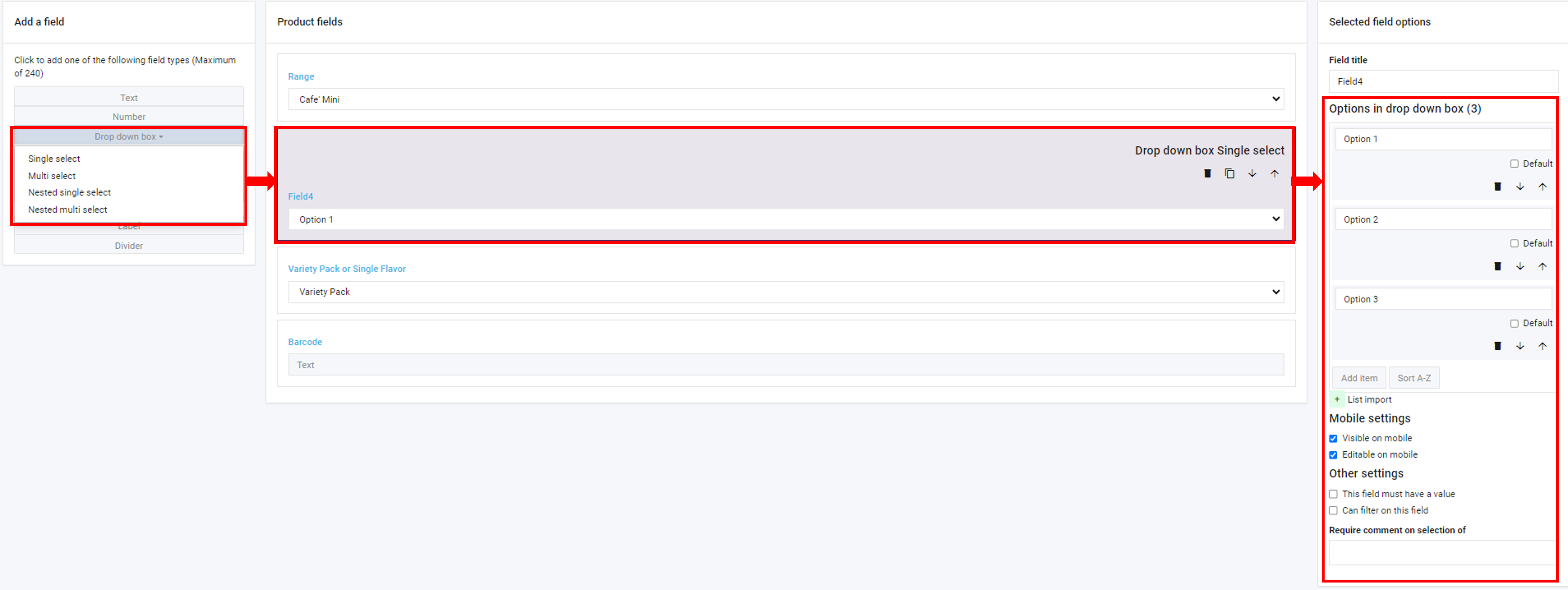 Drop Down Box – choose between single, multi, single nested or multi nested