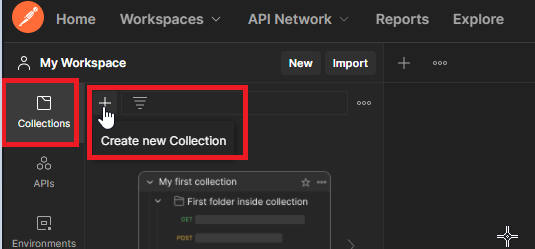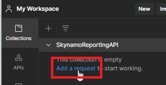 From POSTMAN, create a new collection and then click on Create new Collection and then on Add a request.