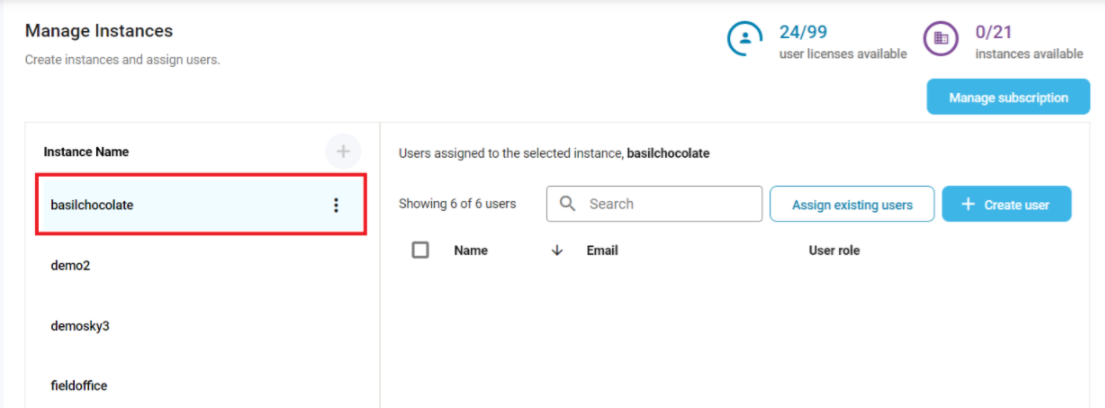 - Click on Manage instances:
