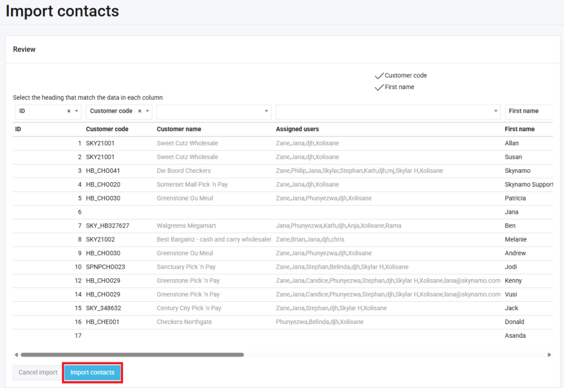6. Back on Skynamo, on the Import contacts page, click on Browse and select the file: