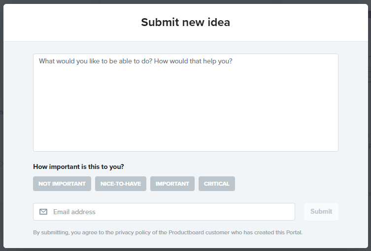 5. You will now be able to configure your idea by filling in the provided fields, then select the 'Submit' button.