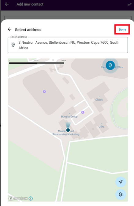 5. Click Done to save the address: