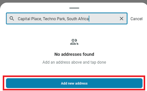 4. In the Address field at the bottom, you can type the address out or you can tap a location on the map and it will add the address for you:
