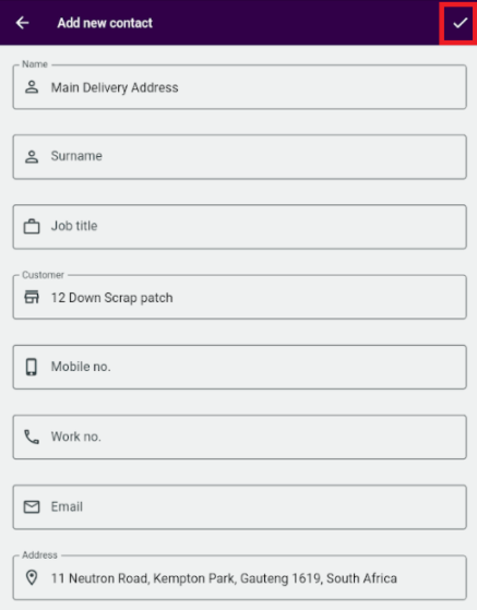 6. Click the tick icon in the top-right corner to save the contact: