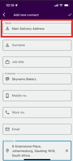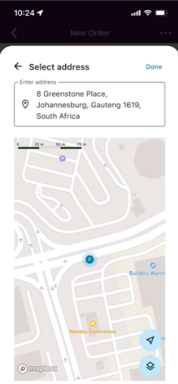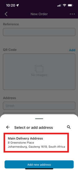 4. In the Address field at the bottom, you can type the address out or you can tap a location on the map and it will add the address for you: