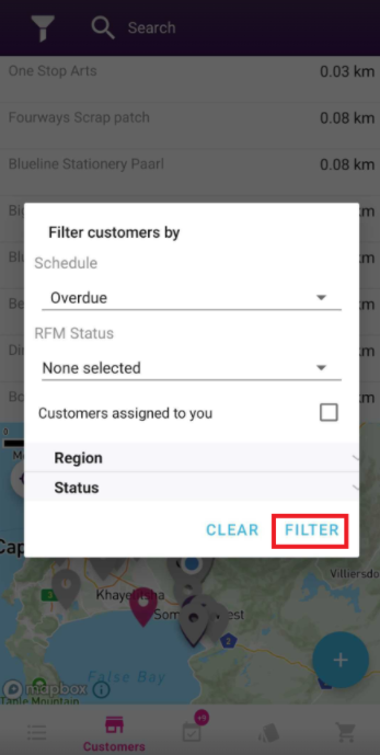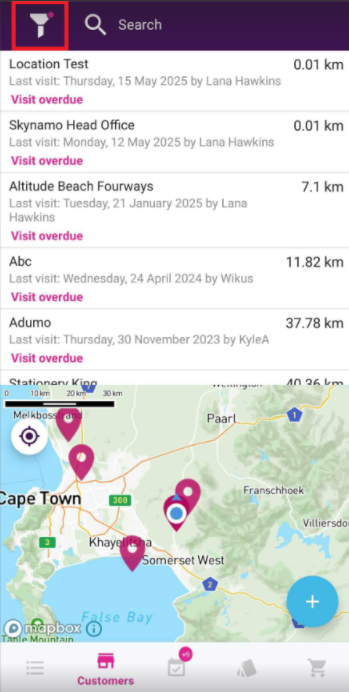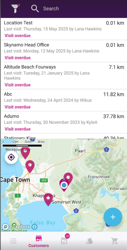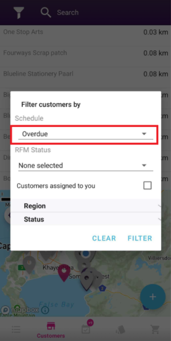If you have visit frequencies set up for your customers, you can see which of them are overdue for visits.