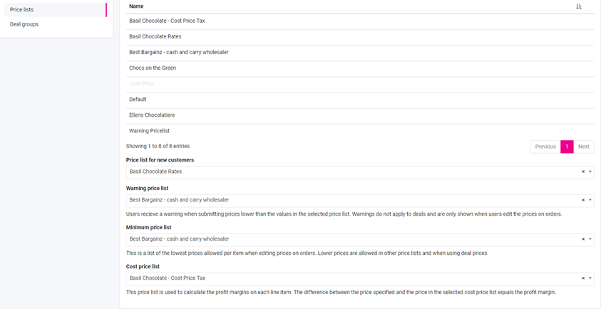 3. Once you have added the price list, you can add your cost pricing to this as normal. After the prices have been added you need to select the following option to indicate to Skynamo which of your price lists is your Cost price list.