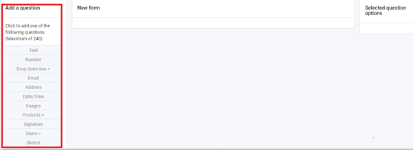 - The new form will be empty, you will then have to select the types of fields your form must have from the left.