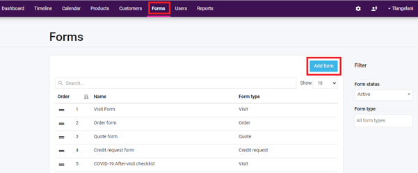 - Upon opening the forms tab, click on the "Add Form" button to create a new form.