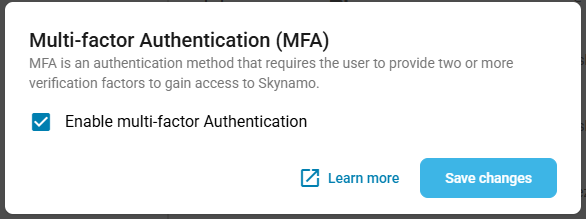 Select the Enable multi-factor Authentication checkbox, then click on Save changes to confirm the changes.