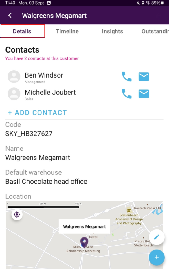 To access a customer, tap on one of the customers and you will land on the details tab of that customer.