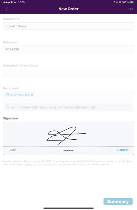 This will take you to the page below where you can add your details to provide more context for the Order or Quote.