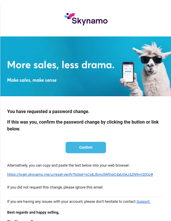 4. Check your email inbox for the following password reset email and click on Confirm: