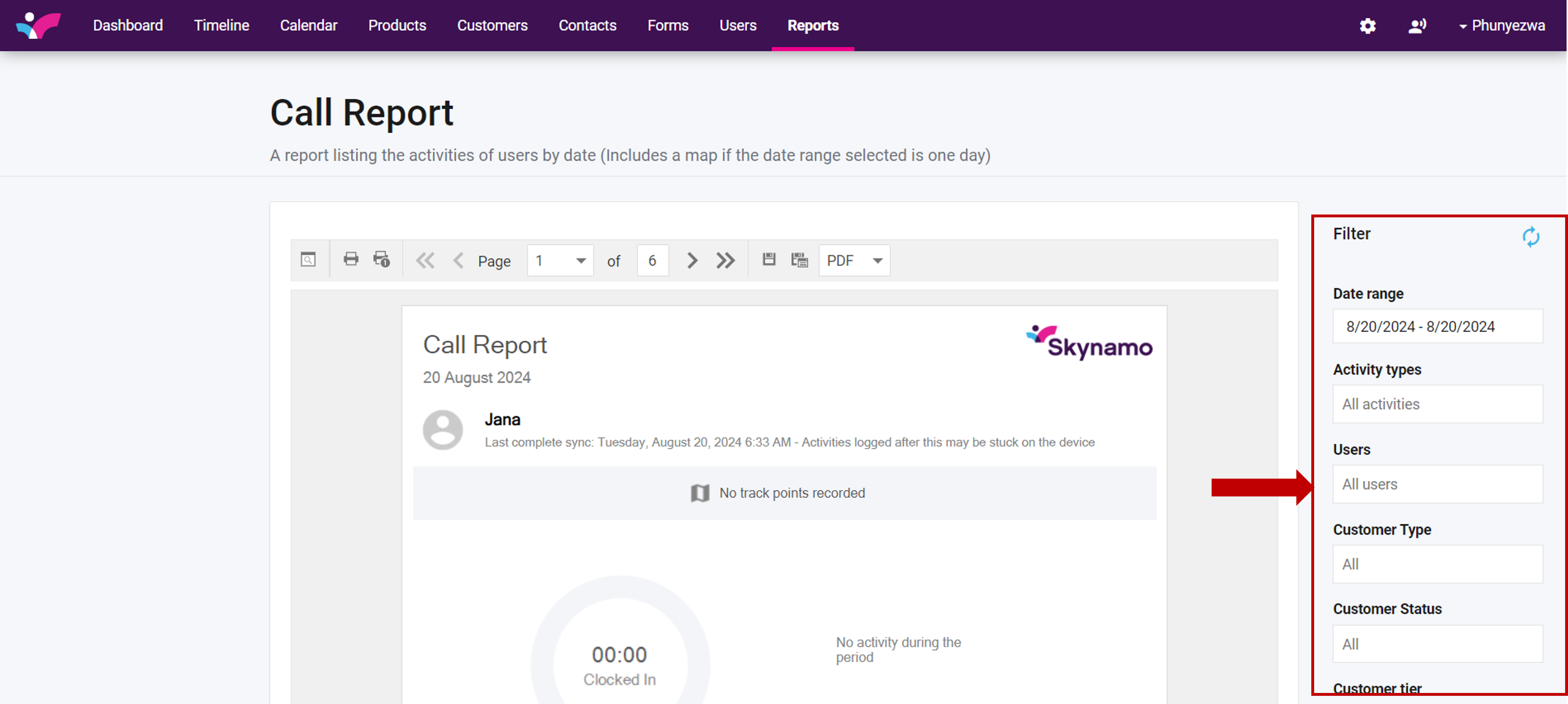 Change the Report Name to “Call Report Management” (For the User specific reports this would be ex. Call Report – Phunyezwa), Period shown would be 1, as we want this report to provide data on the previous 1 day.