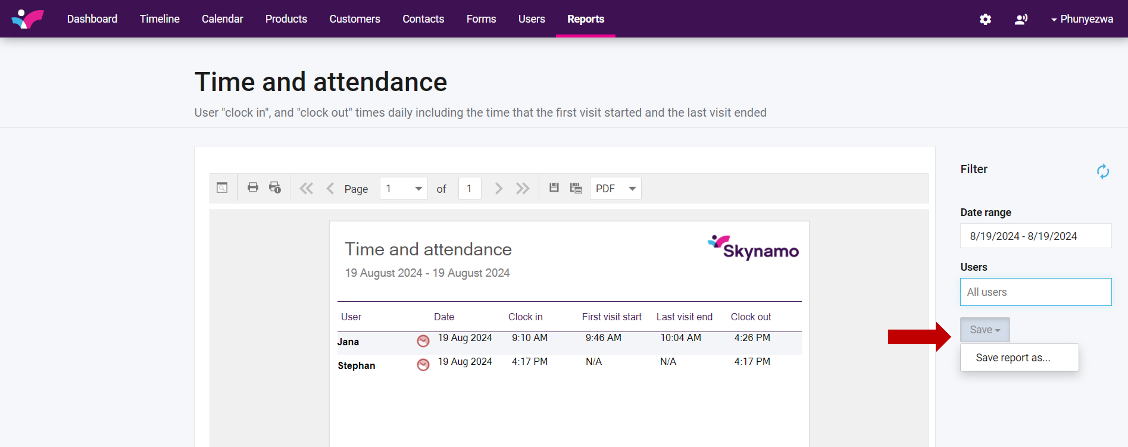 Step 1: Select the Reports tab from the top bar. Select the Time & Attendance Report from the list.