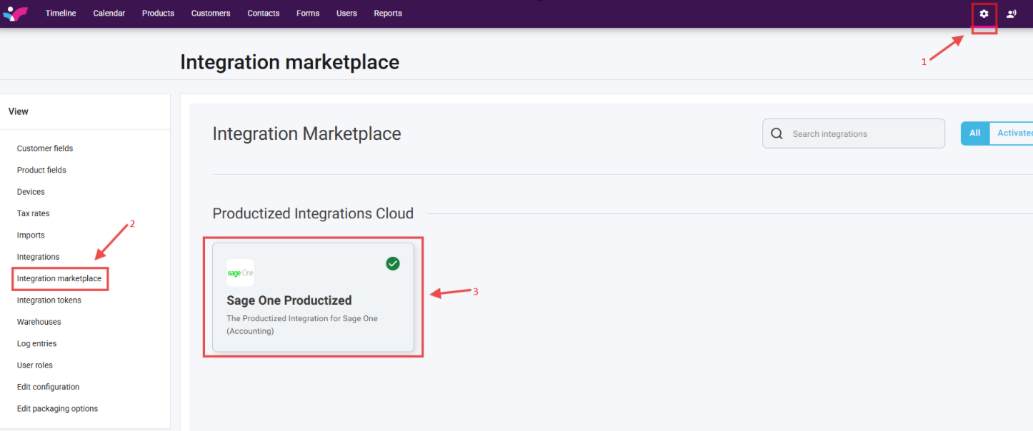 3. Click on the "Sage One Productised"