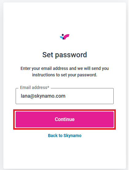 Sending your Skynamo user a password reset email