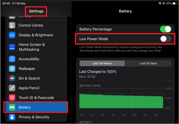 - Please check that battery Low Power Mode is turned off: